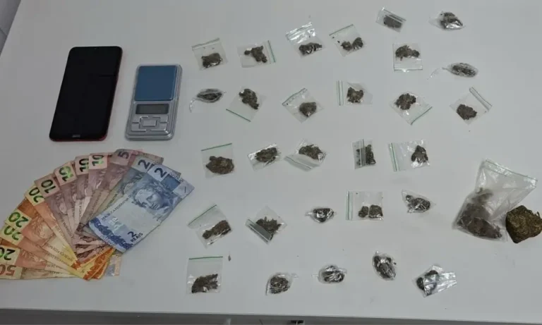 Suspeito foi detido por policiais do 12º BPM no bairro Nova Vitória; com ele, foram encontrados maconha, balança de precisão e dinheiro em espécie